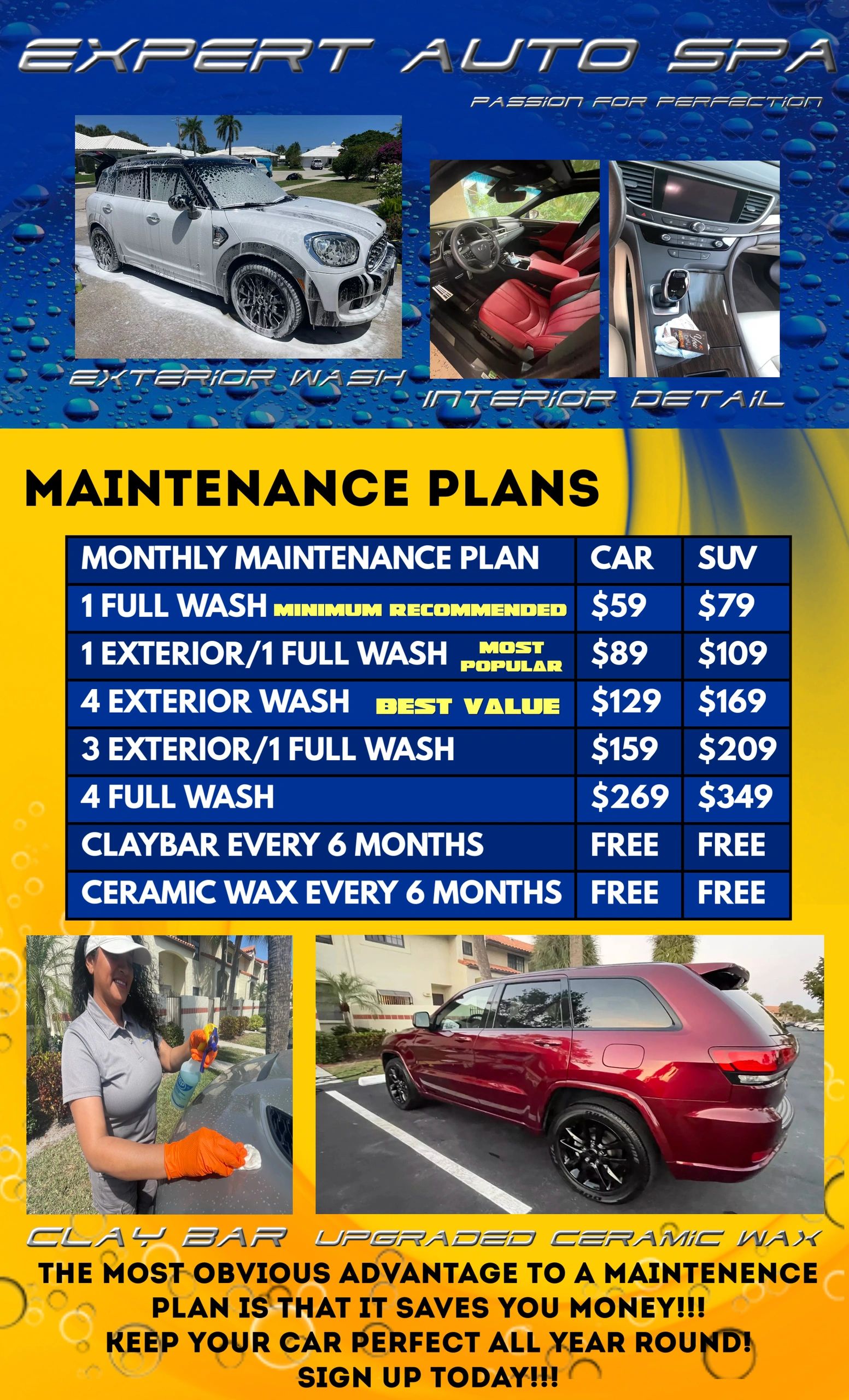 *A full detail must be done prior to or within the last 30 days to sign up for a maintenance plan.